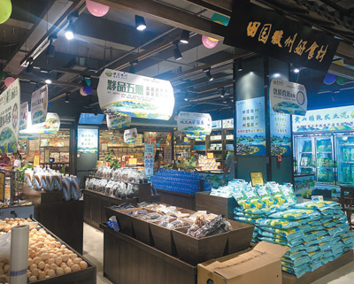 在黃山市綠色農(nóng)產(chǎn)品區(qū)域公用品牌“田園徽州”元一旗艦店,當(dāng)?shù)靥厣r(nóng)副產(chǎn)品琳瑯滿目。程央央 攝
