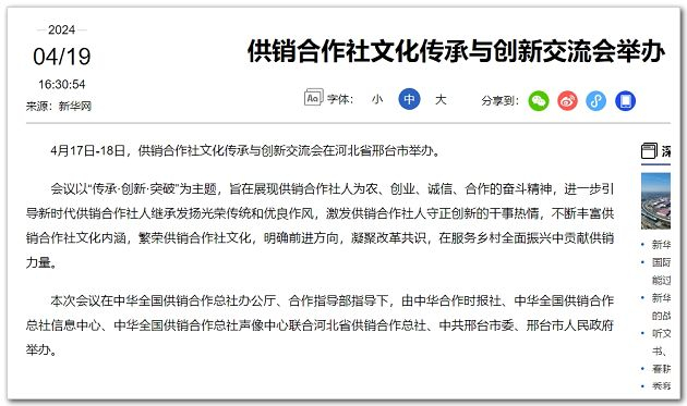 本次會議在中華全國供銷合作總社辦公廳、合作指導(dǎo)部指導(dǎo)下,由中華合作時報社、中華全國供銷合作總社信息中心、中華全國供銷合作總社聲像中心聯(lián)合河北省供銷合作總社、中共邢臺市委、邢臺市人民政府舉辦。